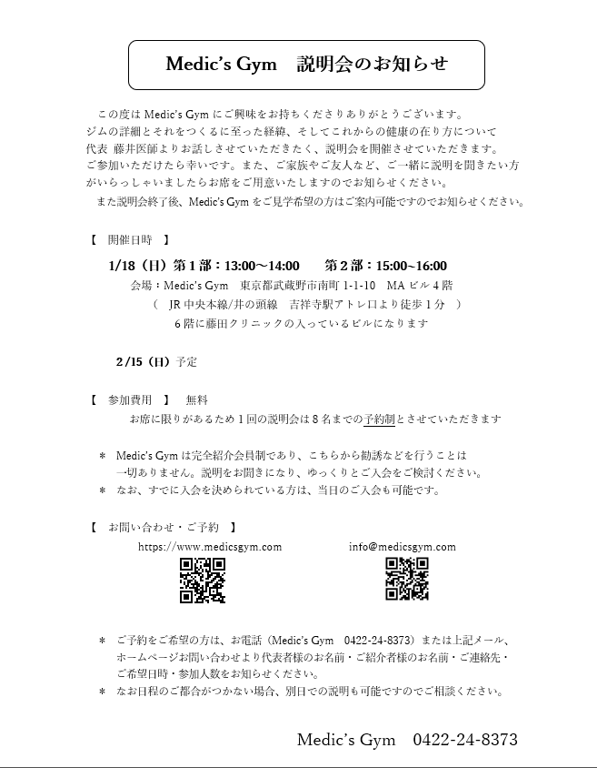Medic’s Gym 説明会(2026年1月)のお知らせ