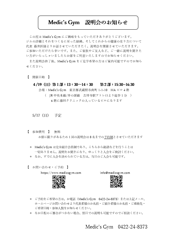 Medic’s Gym 説明会(2026年4月)のお知らせ